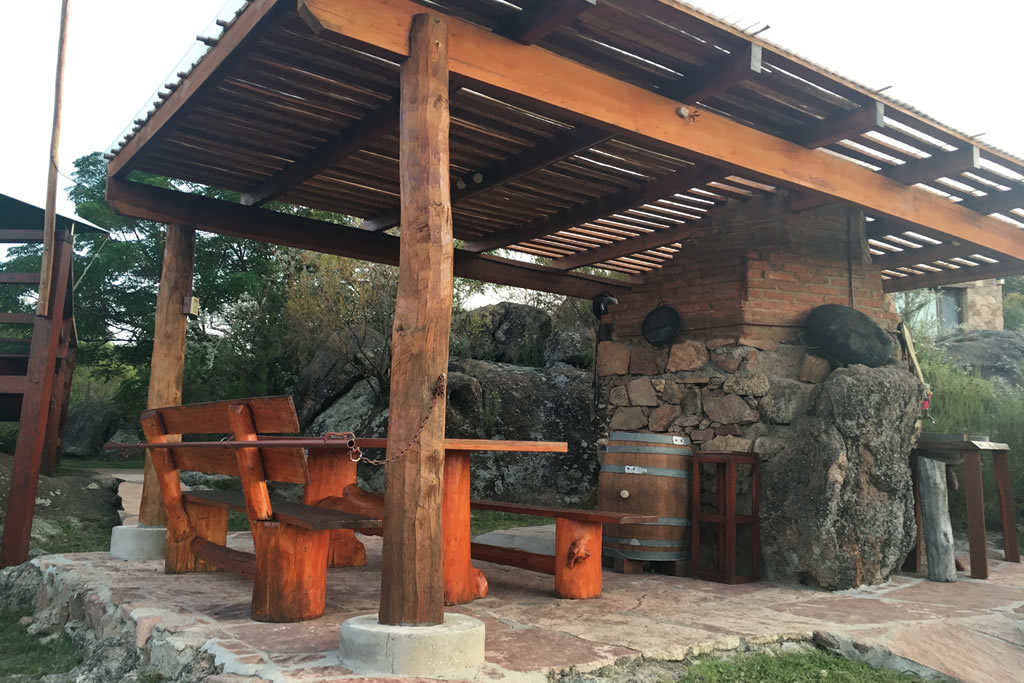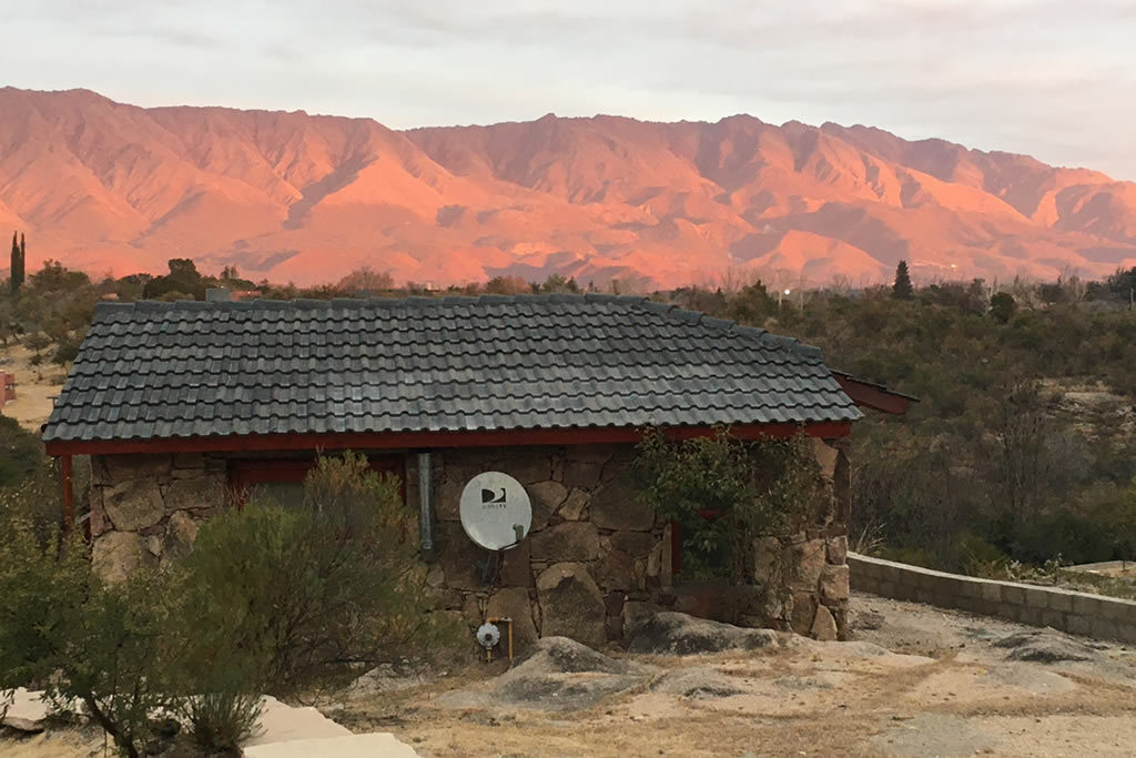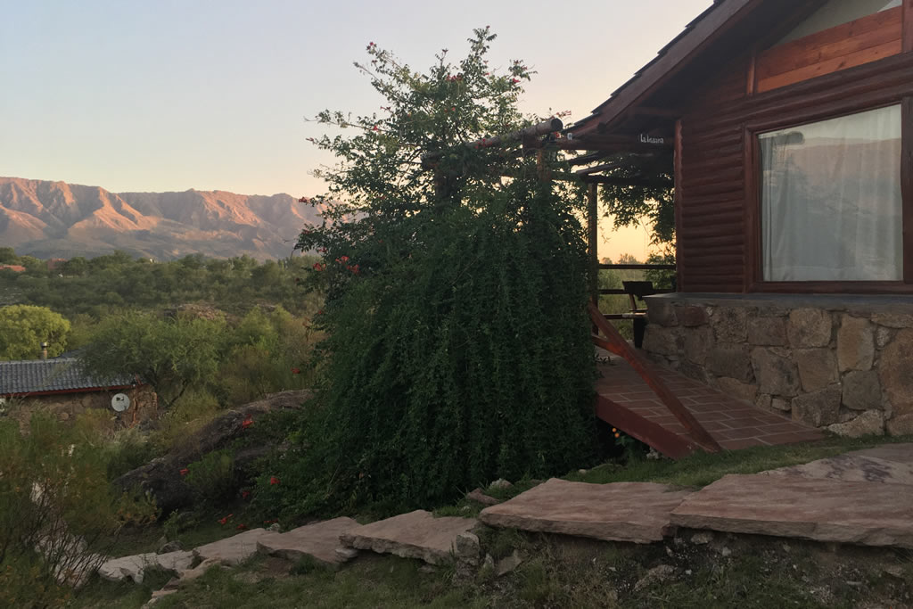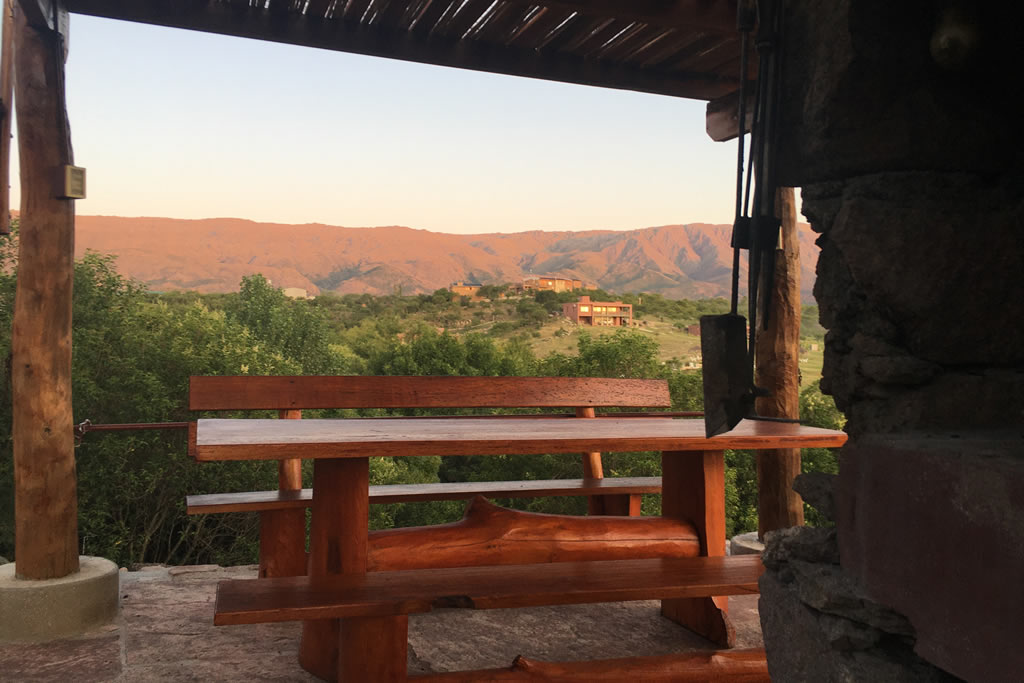 El paisaje posee un encanto especial. Las cabañas recostadas sobre las piedras tienen una vista maravillosa de las serranías de Nono.